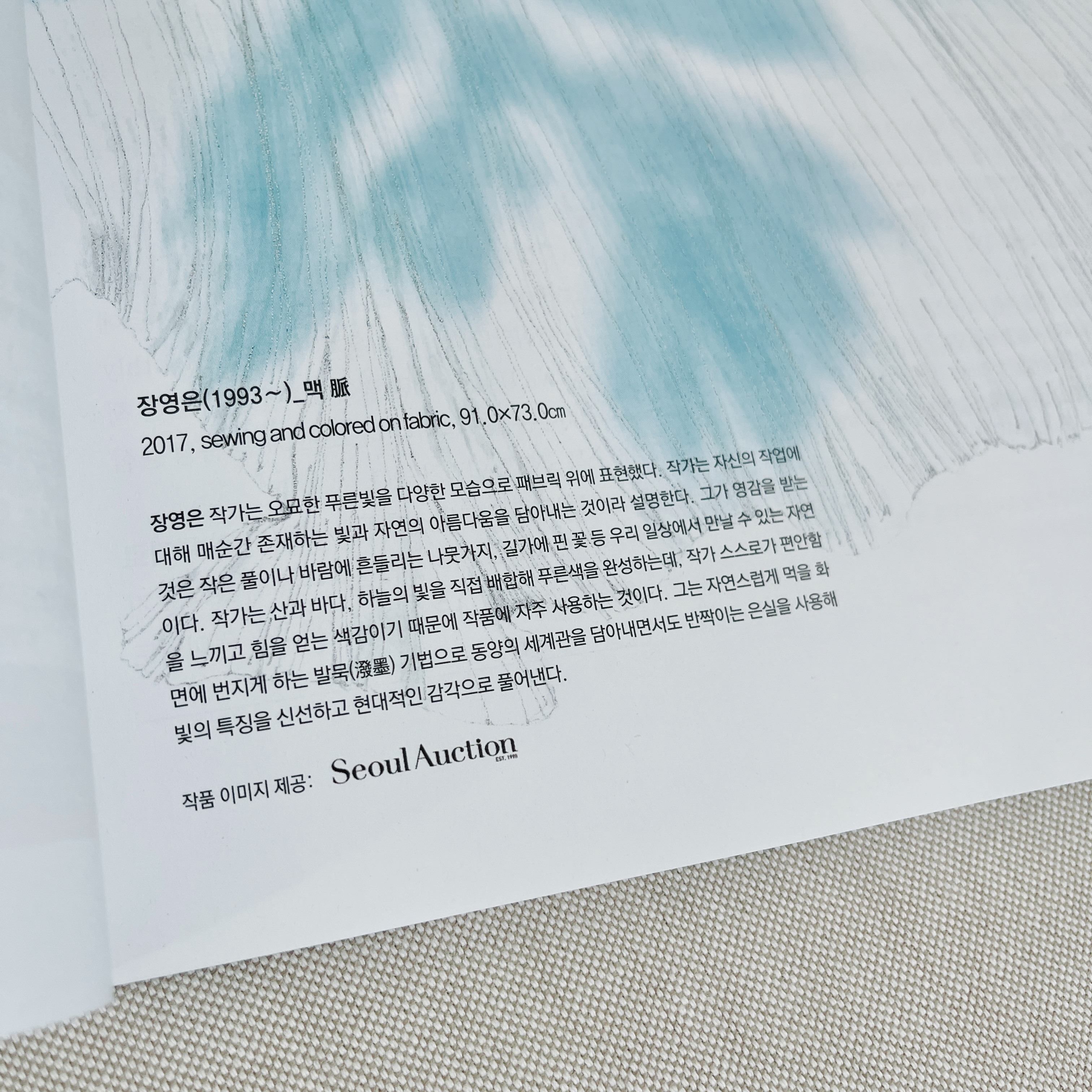 더뷰스 | "MZ세대가, 추사 '세한도'를 21세기에 재창조?" | 2022.08 (0) 2023.02.17 현대카드 DIVE | "어머 지금 꼭 사야 해, 지금 주목해야 할 신진 작가" | 2021.01 (0) 2023.02.17 평론 | "ETERNALLY BLUE"_배민영 평론가 | 2021.12 (0) 2023.02.17 충청투데이 | "LA 아트쇼 25주년…한국작가들 다양한 기획 전시 준비 중" | 2020.01 (0) 2023.02.17 문화뉴스 | "광목천에 번지는 발묵의 매력, 장영은 작가 'RAIN OR SHINE'展 개최" | 2019.05 (0) 2023.02.17