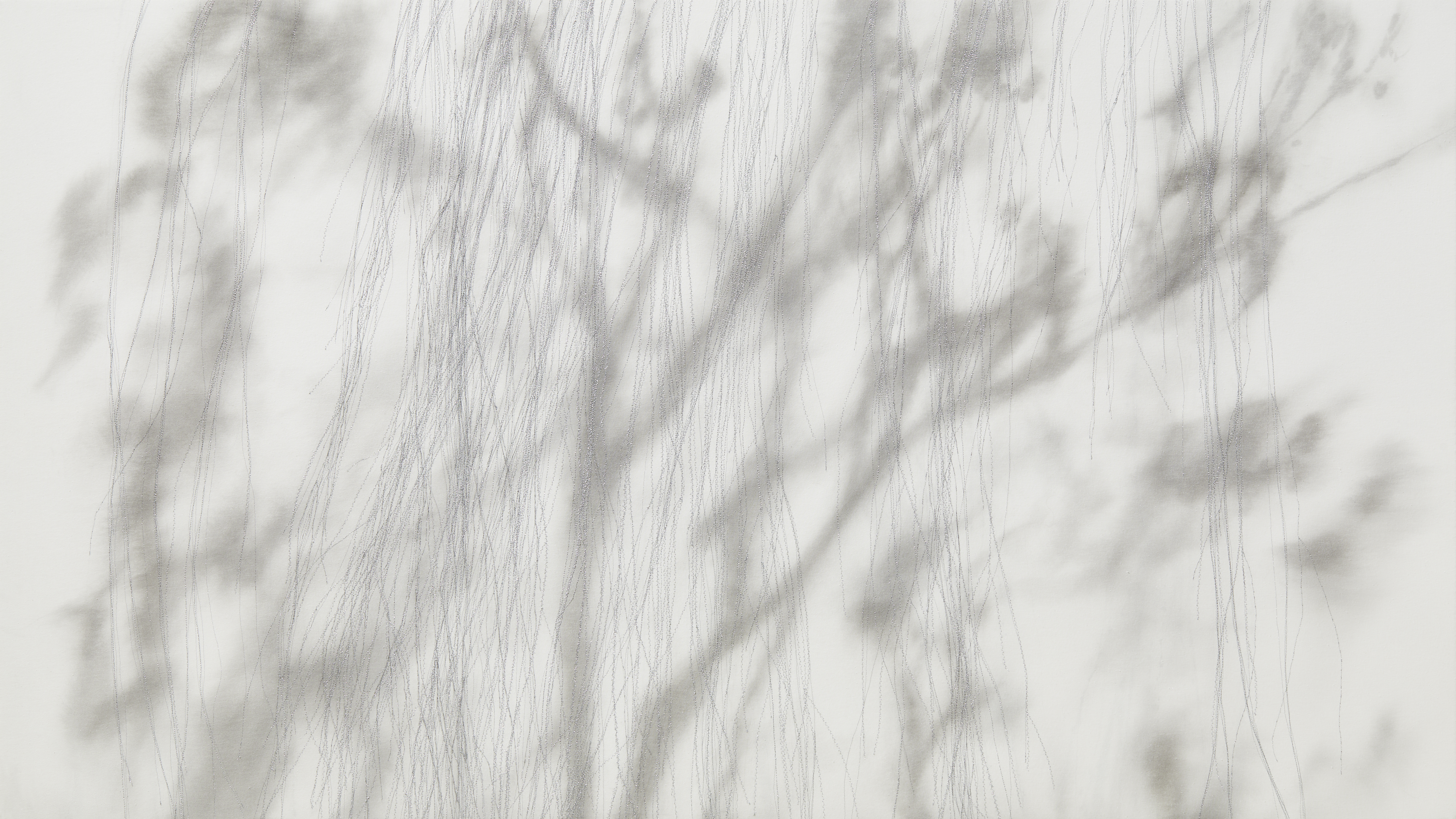 <Rain or Shine> sewing and ink on fabric, 107x380cm, 2019