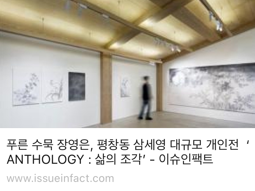 ‘푸른 수묵’으로 잘 알려진 장영은 작가가 최근 본인의 주요 연작과 신작을 모아 서울 평창동 삼세영 갤러리에서 선보인다.