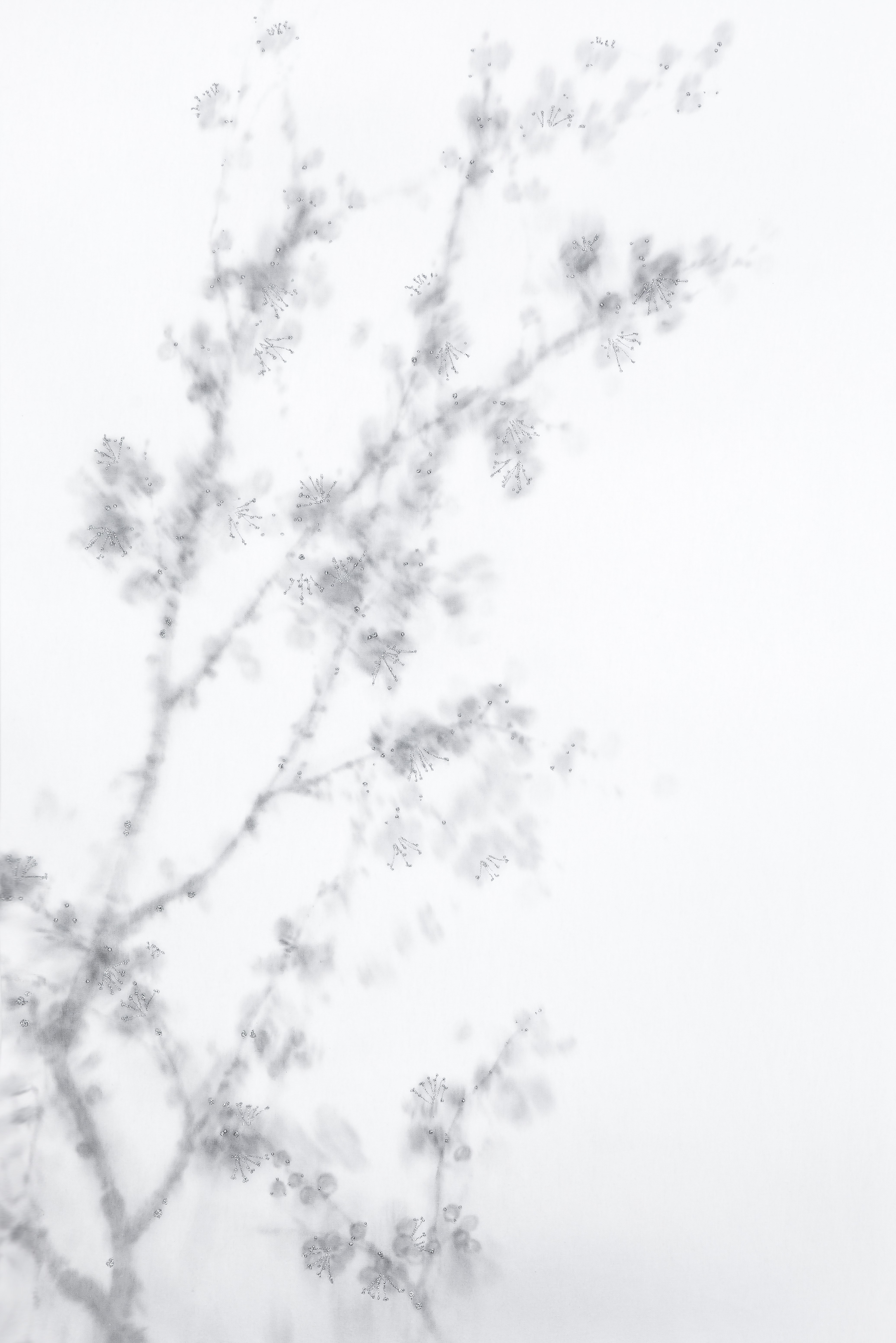 2023년 12월, 전통 사군자를 수묵으로 변주한 매·난·국·죽 연작과, 동백, 대형 수묵 월매도 작업 ❬Undried Fragrance : 마르지 않는 향기❭시리즈를 새로이 선보인다. 2019년, 매화꽃이 지는 모습을 보며 계절이 지나가는 아쉬움에 찰나의 순간과 향기를 화폭에 담으며 시작한 작업이다. 기존의❬Undried Fragrance❭시리즈는 수묵으로 담박한 꽃을 표현하고 그 주변을 둘러싼 여백으로 빛을 은유적으로 담아내며, 꽃의 중심기관인 꽃술의 반짝이는 자수 표현이 주를 이뤘다.