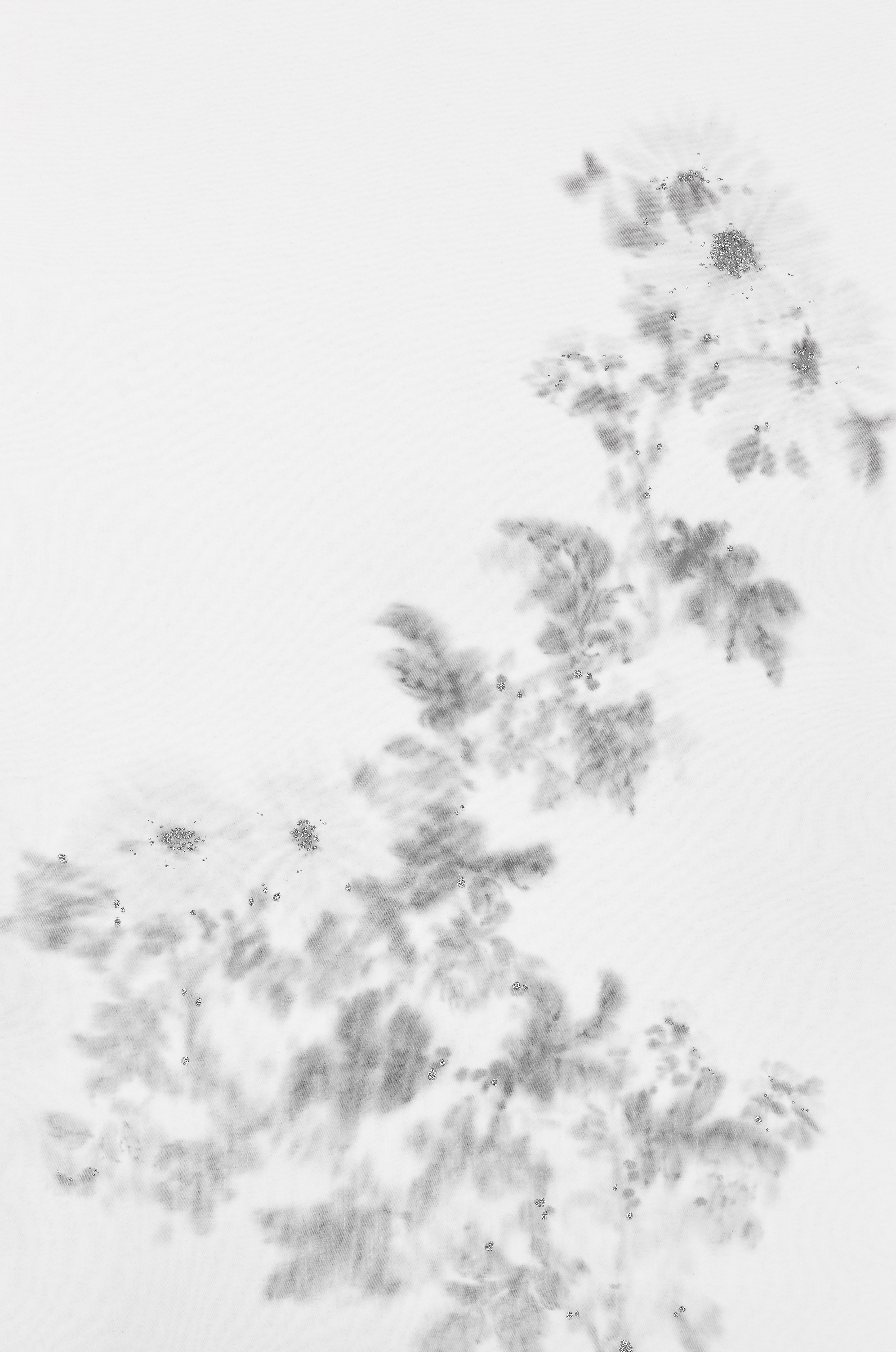 2023년 12월, 전통 사군자를 수묵으로 변주한 매·난·국·죽 연작과, 동백, 대형 수묵 월매도 작업 ❬Undried Fragrance : 마르지 않는 향기❭시리즈를 새로이 선보인다. 2019년, 매화꽃이 지는 모습을 보며 계절이 지나가는 아쉬움에 찰나의 순간과 향기를 화폭에 담으며 시작한 작업이다. 기존의❬Undried Fragrance❭시리즈는 수묵으로 담박한 꽃을 표현하고 그 주변을 둘러싼 여백으로 빛을 은유적으로 담아내며, 꽃의 중심기관인 꽃술의 반짝이는 자수 표현이 주를 이뤘다.