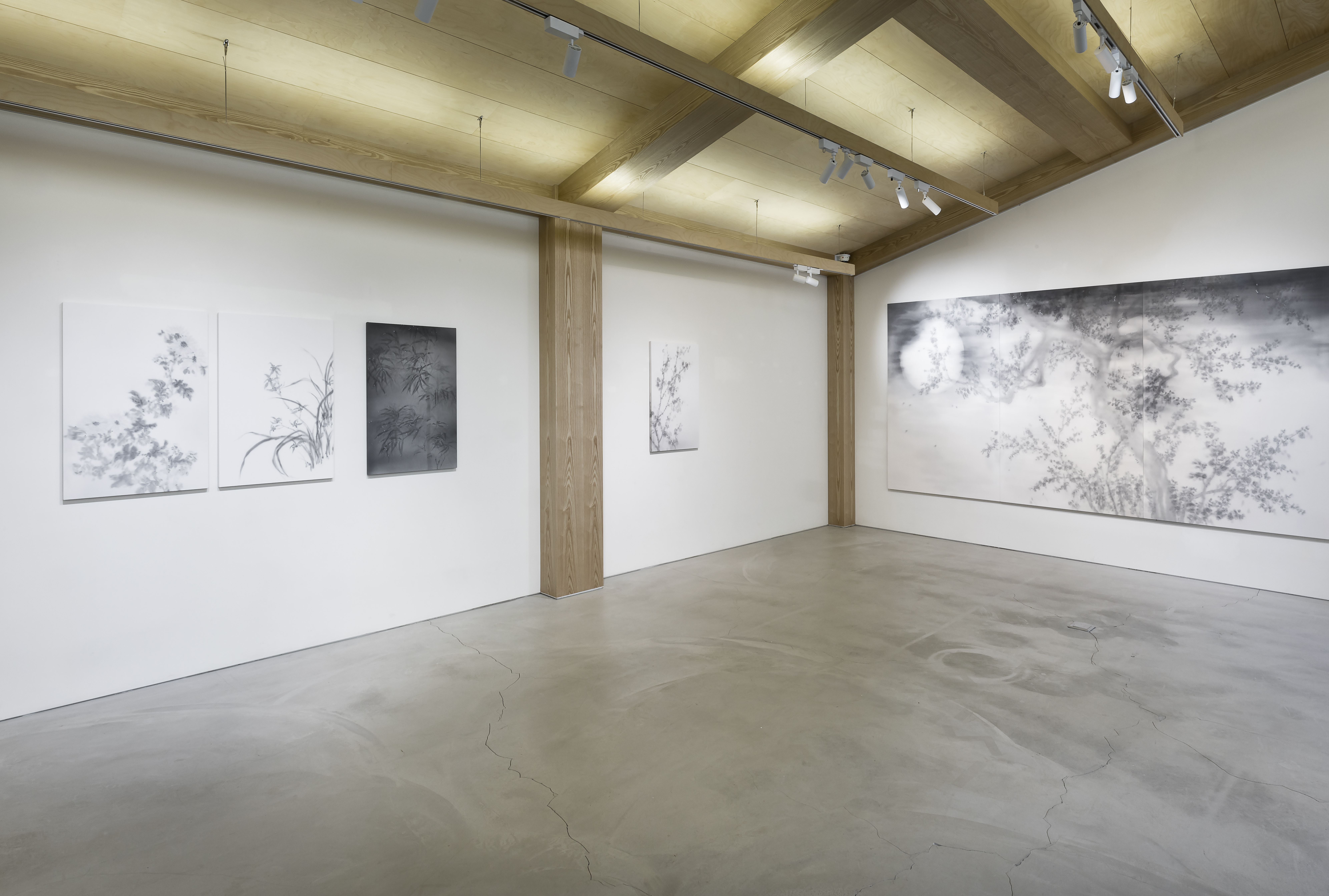2023년 12월, 전통 사군자를 수묵으로 변주한 매·난·국·죽 연작과, 동백, 대형 수묵 월매도 작업 ❬Undried Fragrance : 마르지 않는 향기❭시리즈를 새로이 선보인다. 2019년, 매화꽃이 지는 모습을 보며 계절이 지나가는 아쉬움에 찰나의 순간과 향기를 화폭에 담으며 시작한 작업이다. 기존의❬Undried Fragrance❭시리즈는 수묵으로 담박한 꽃을 표현하고 그 주변을 둘러싼 여백으로 빛을 은유적으로 담아내며, 꽃의 중심기관인 꽃술의 반짝이는 자수 표현이 주를 이뤘다.
