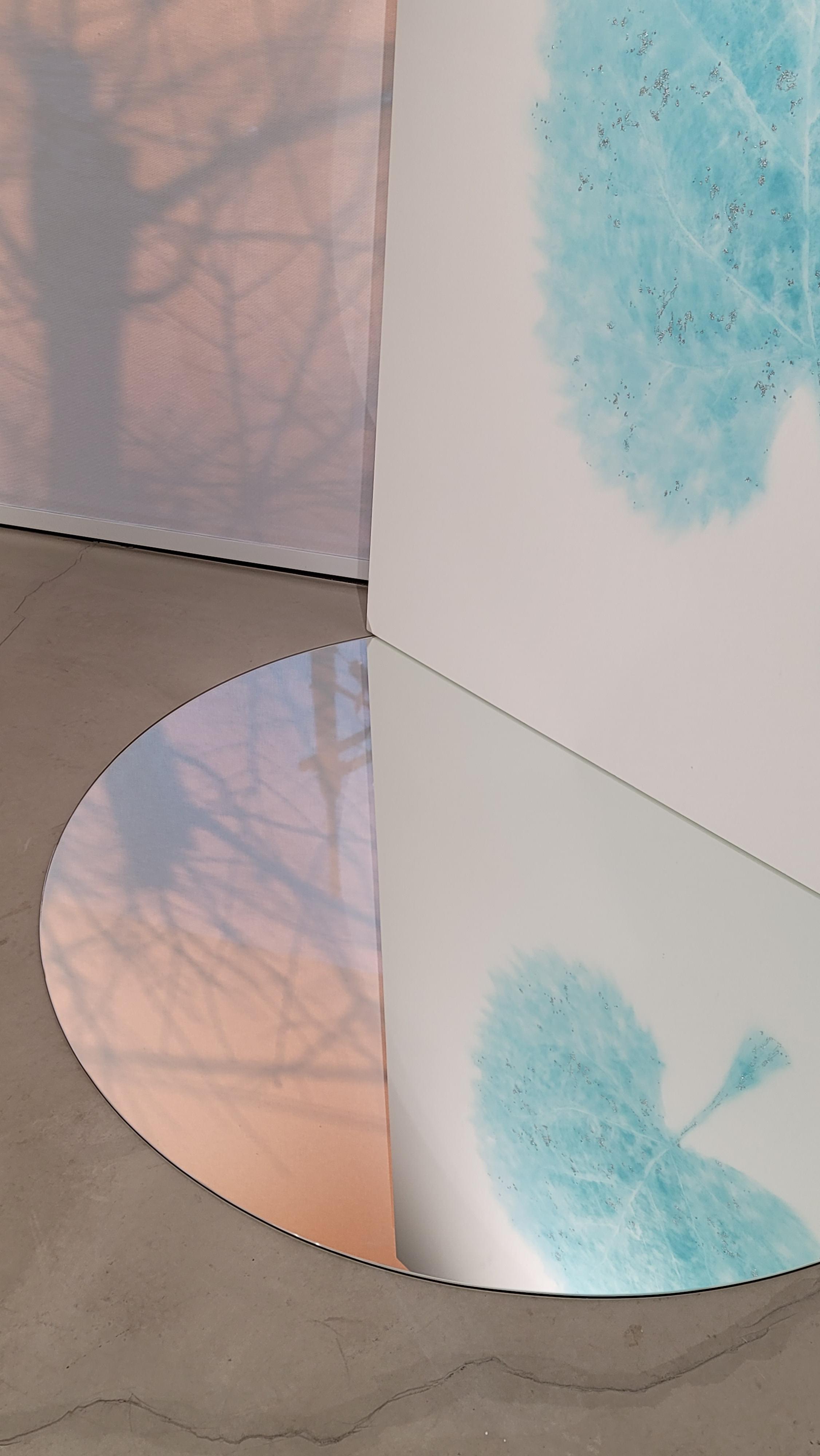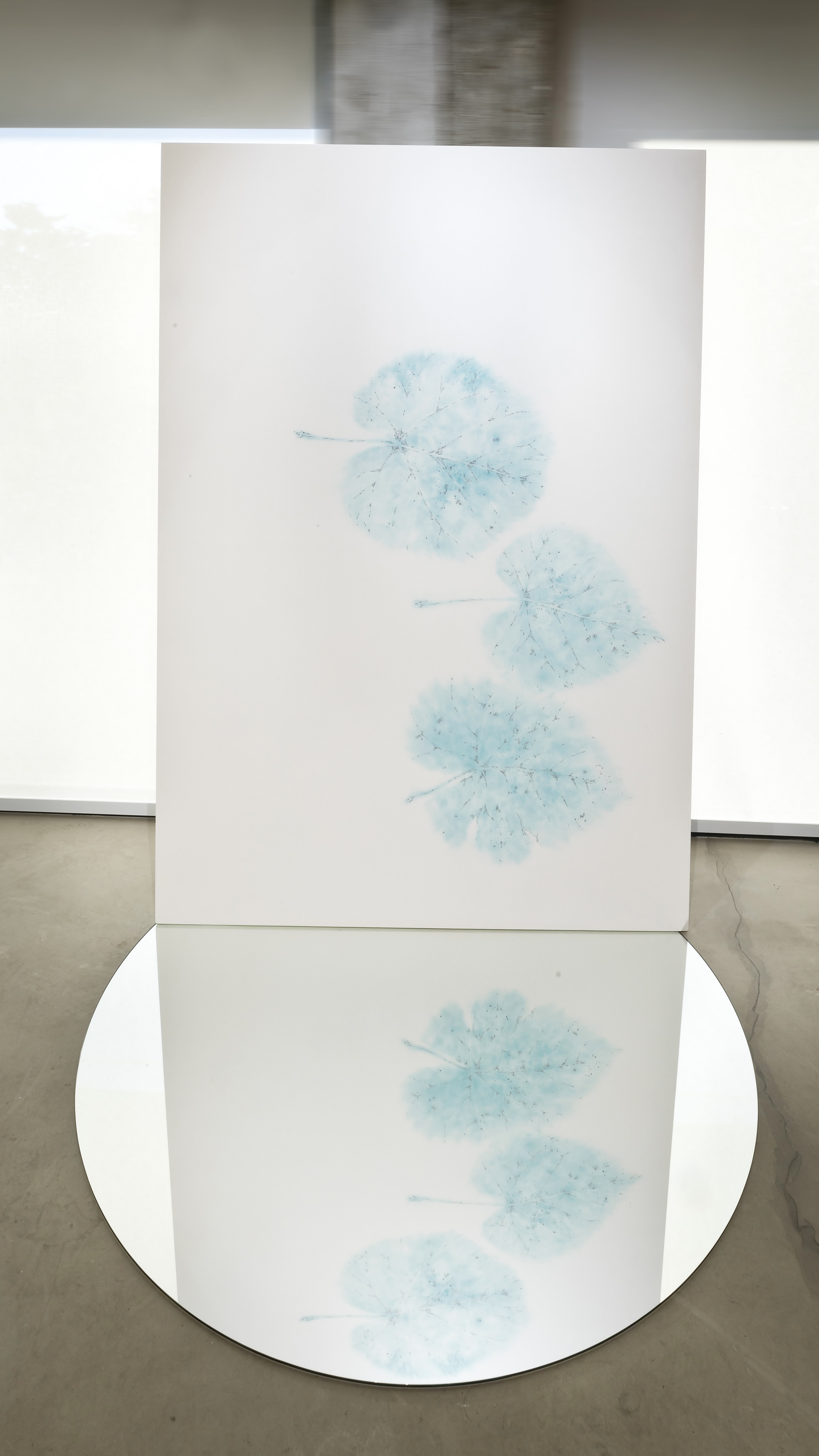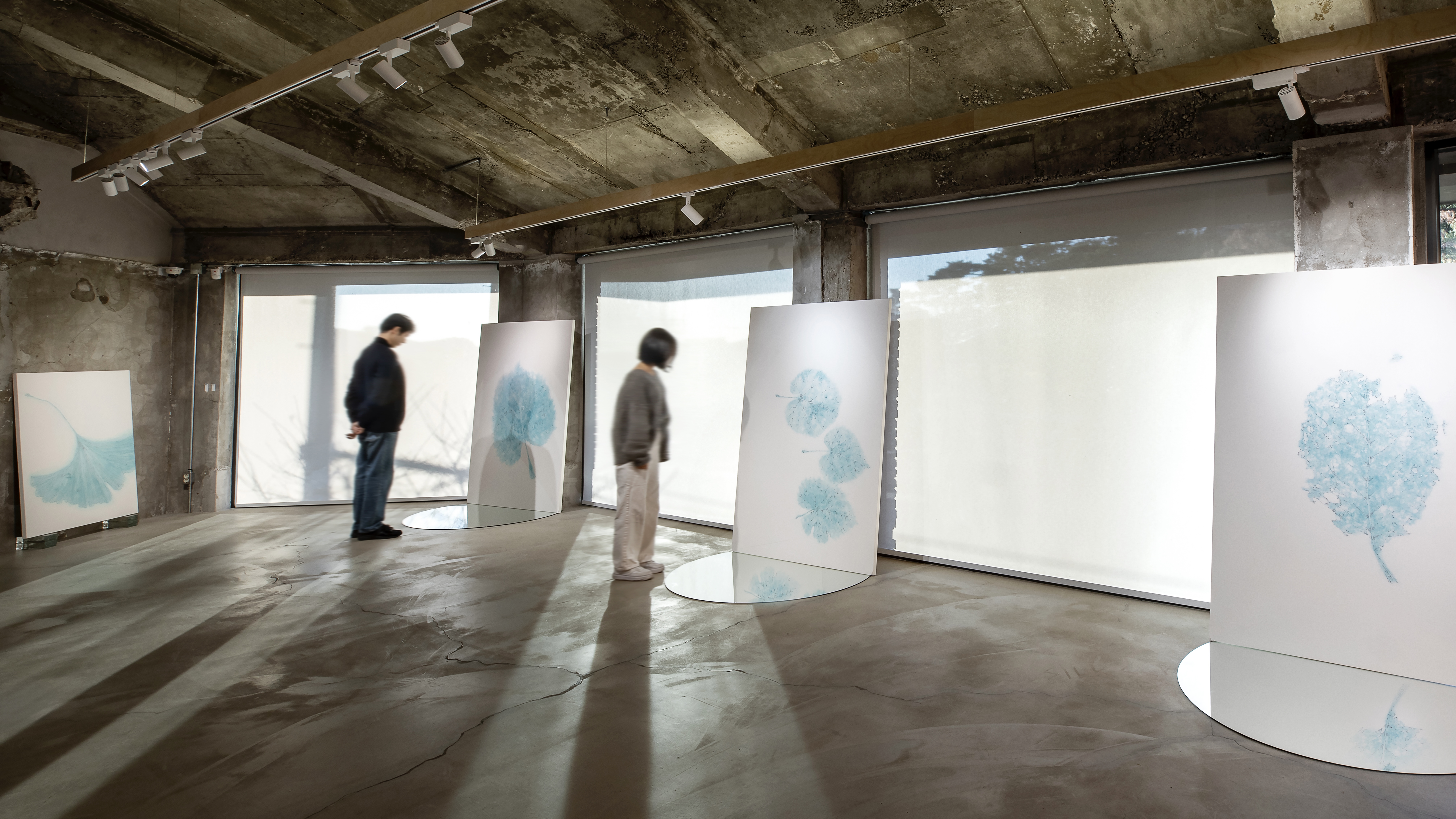 더 나아가 거울에 반전되어 떠오른 잎의 그림자, 관람하는 각도와 시선의 높낮이에 따라 푸른 생명의 에너지가 바람을 타고 생동하는 장면의 포착, 푸른 잎에 투영된 자화상과 함께 본인의 모습을 바라보는 관람객의 시선, 개인의 관념에 따라 다양한 감상이 발현되는 순간들을 상상하며 기획했다.