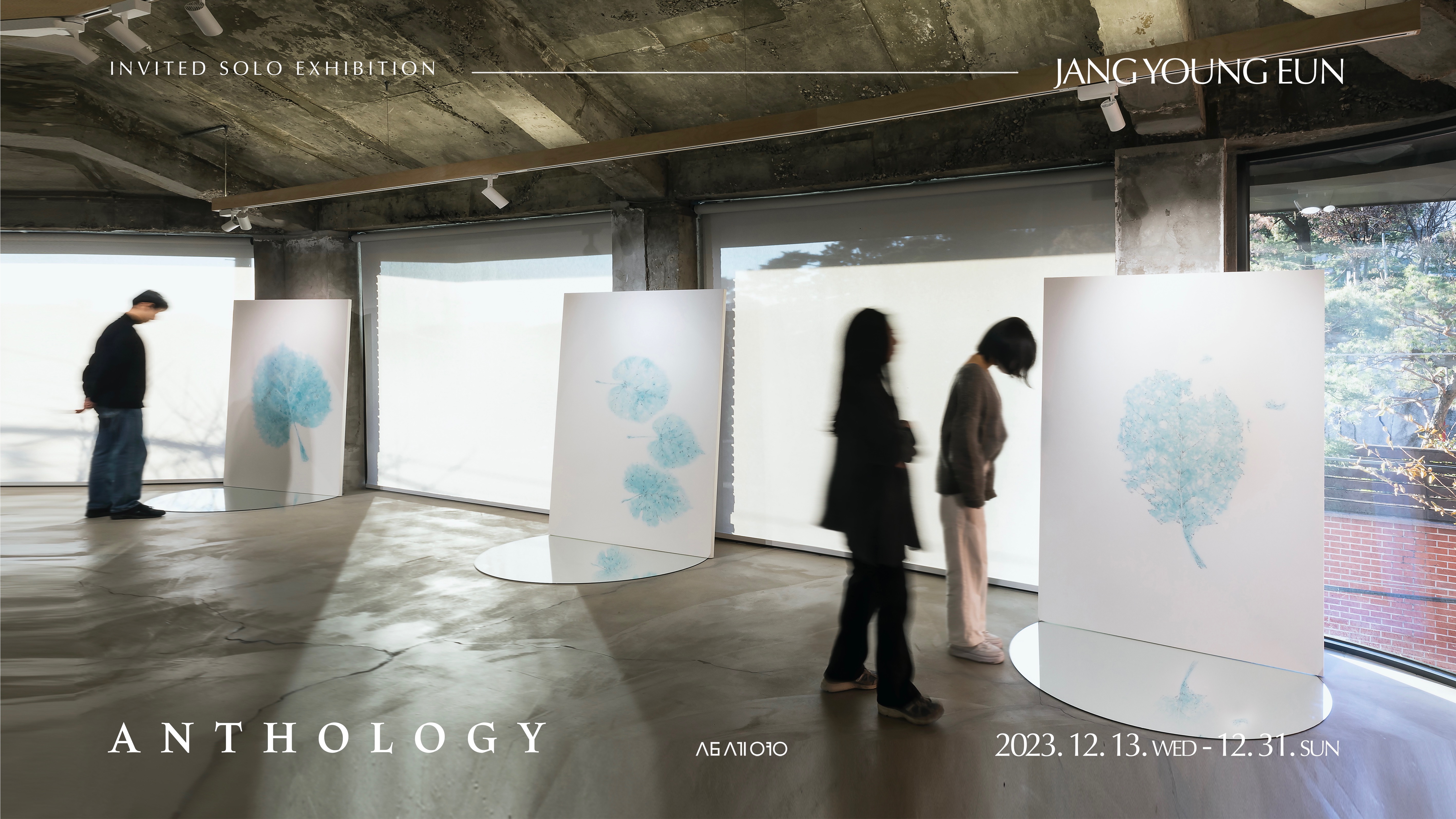 2017년 첫 개인전 이후, 2023년 12월 삼세영에서 열 번째 개인전을 맞이하며 새로운 형식의 가변 설치 작업과, 푸른 잎 형상의 대형 작업을 반원형으로 제작한 거울 위에 수직으로 디스플레이를 시도하며 3관을 구성했다. 새로 선보이는 ❬Anthology 46❭·❬Anthology 47❭· ❬Anthology 48❭시리즈는 그간 수집해 온 자연의 조각들과, 2022년 가을 남프랑스 여행에서 촬영한 실제 이파리들을 모티브로 한다.
