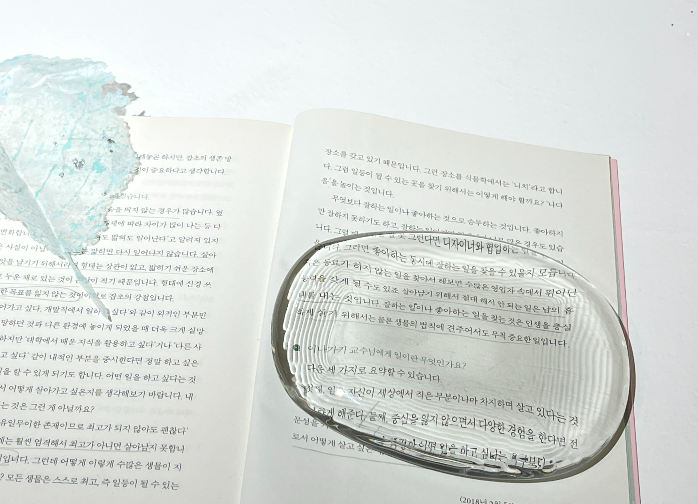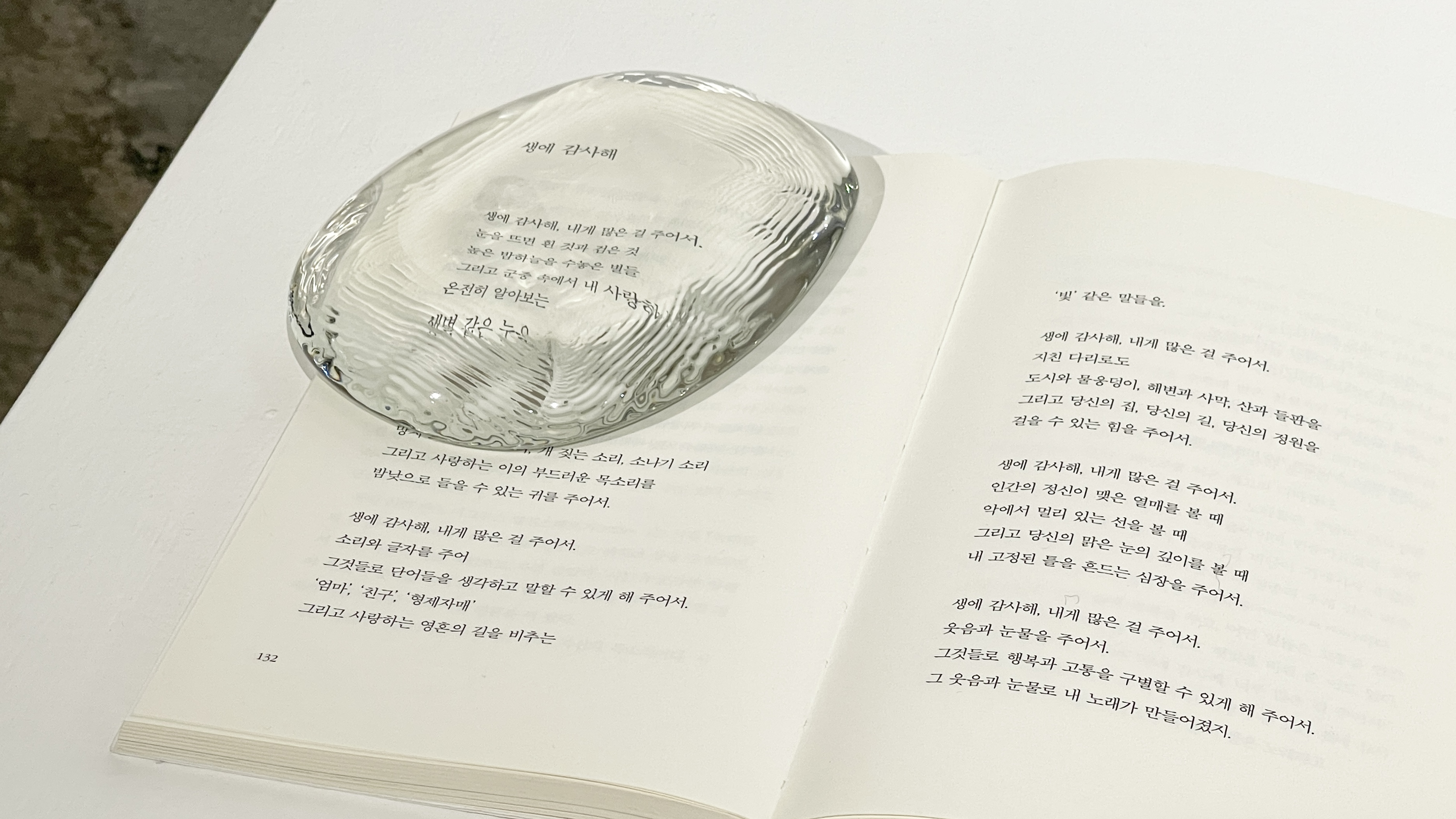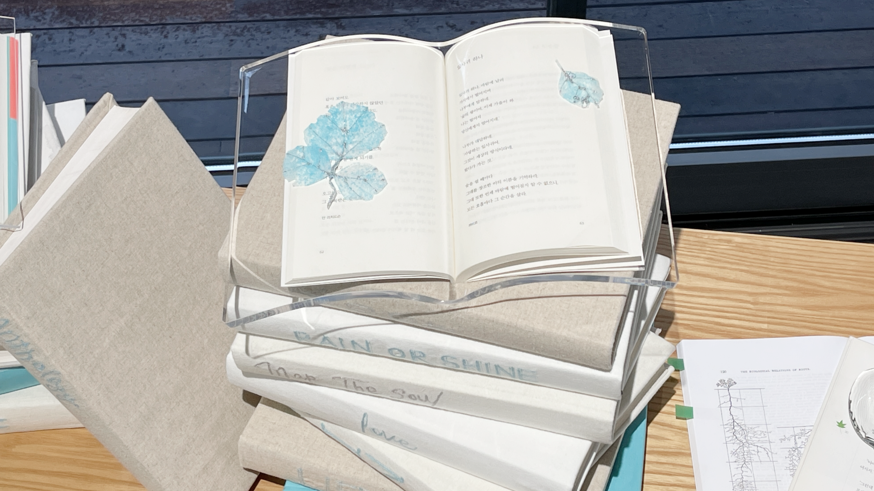 더불어 펼쳐둔 시집과, 여러 서적의 페이지는 삶과 작업 가운데에서 영감을 받고, 깊이 공감한 문장들을 선별했다. 이는 일상적 영감의 근원을 아카이빙 형식으로 관람객에게 공유하는 것이다.