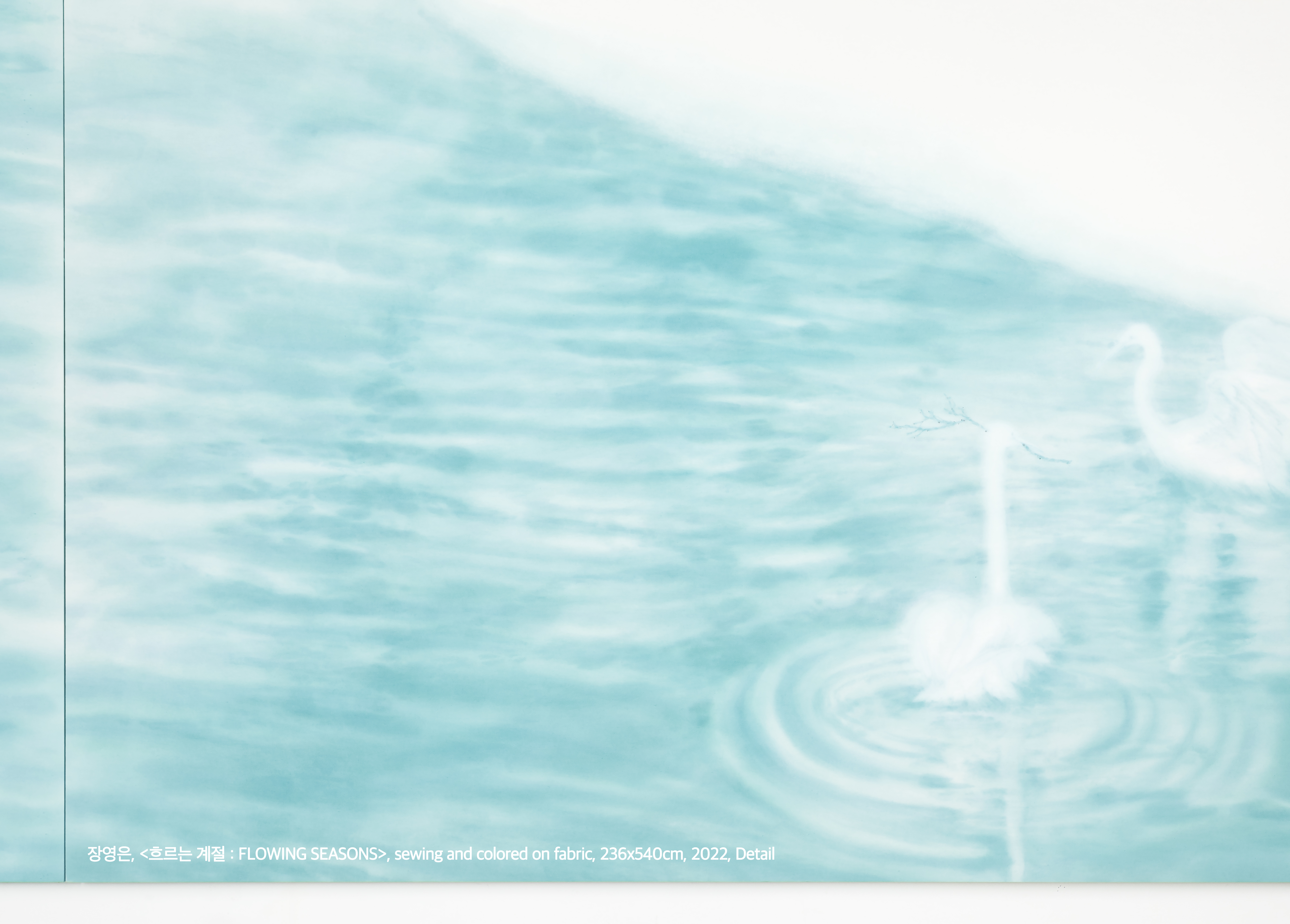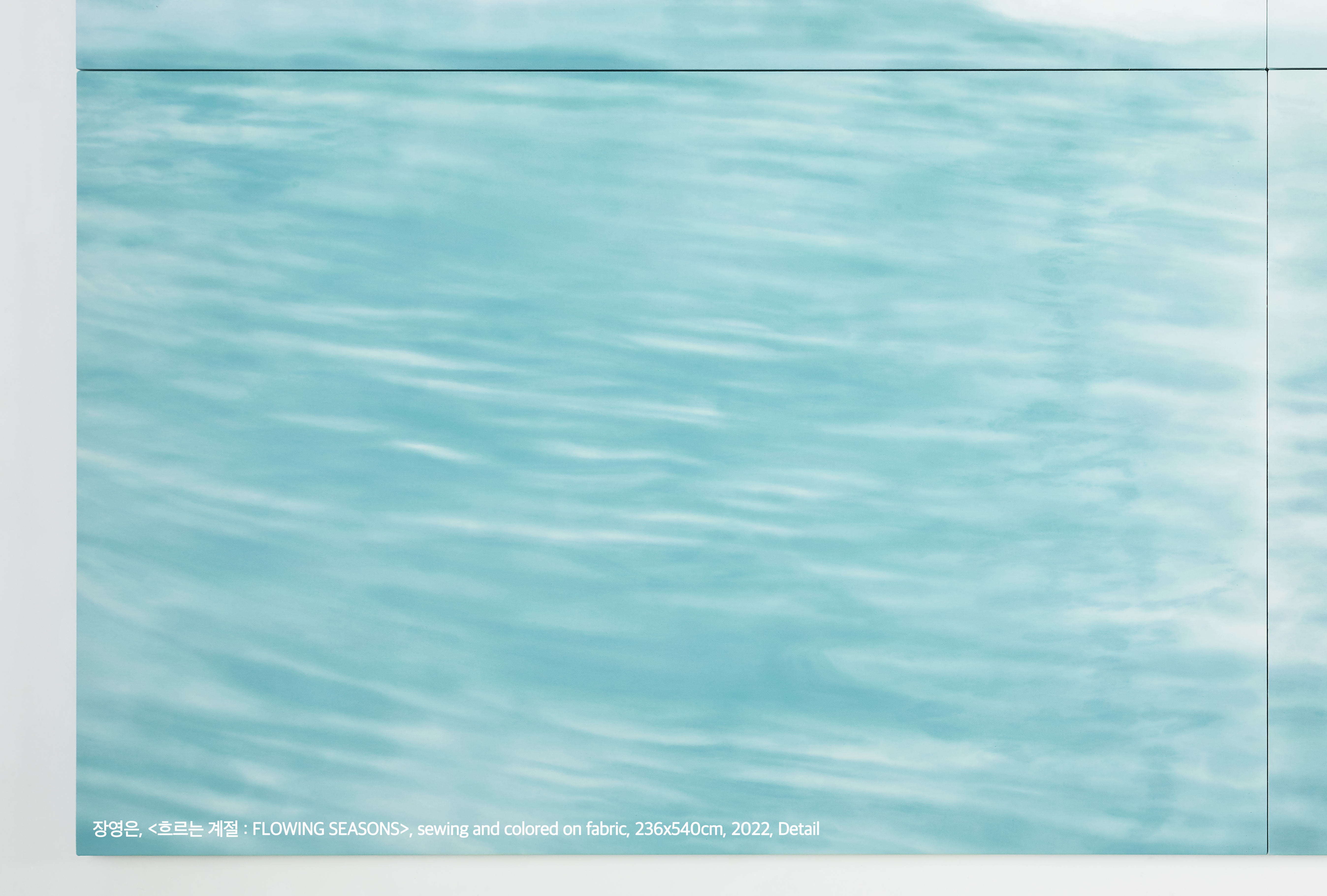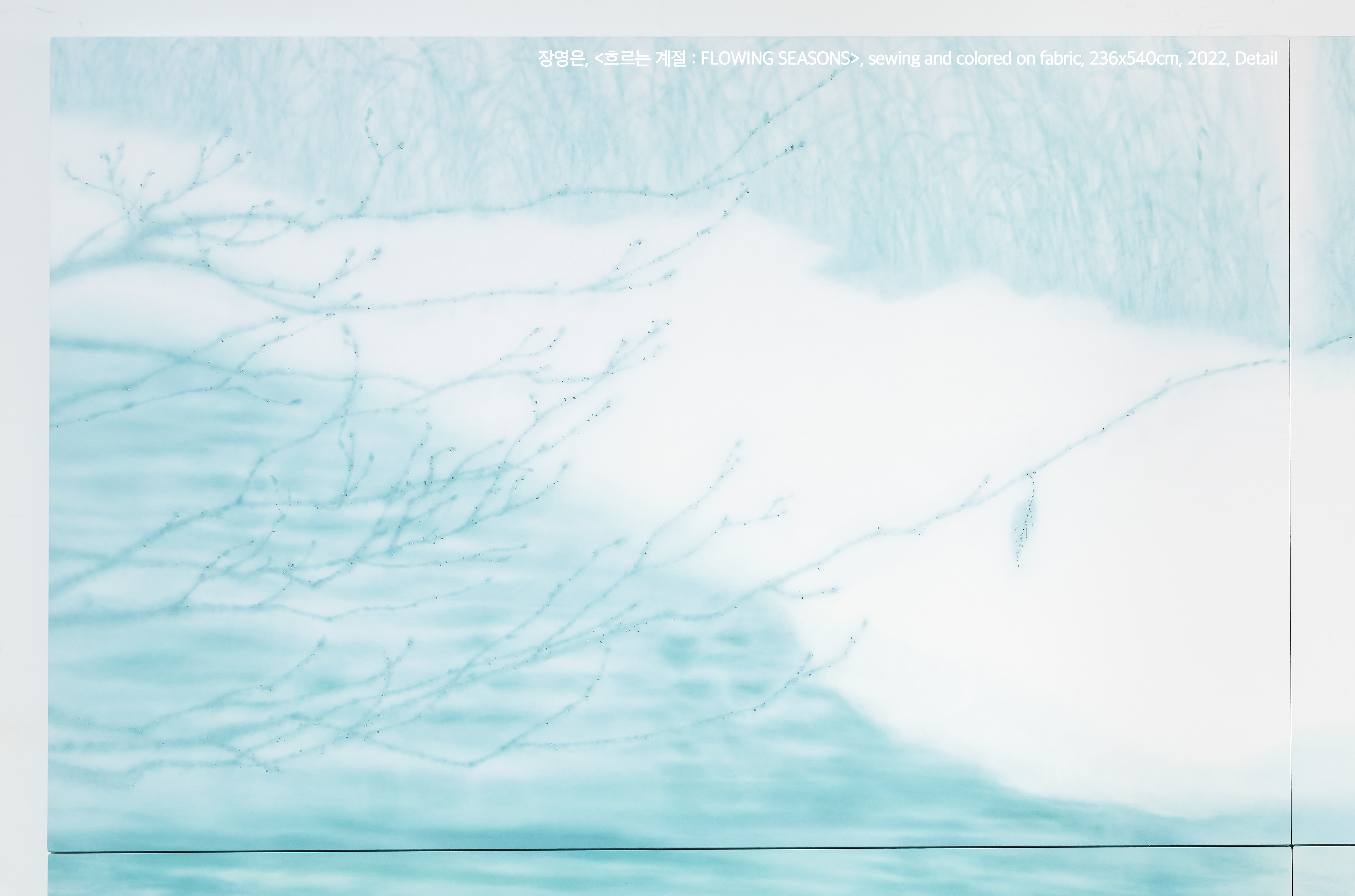 JANG YOUNG EUN <Flowing Seasons : 흐르는 계절>, sewing and colored on fabric, 236x540cm, 2022.
