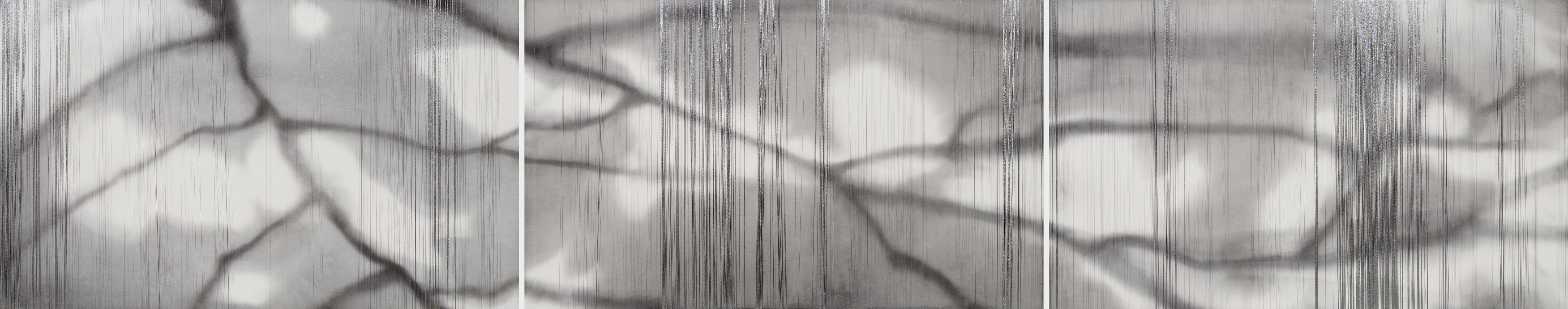 장영은 JANG YOUNG EUN〈Pulse : 맥 10-1, 2, 3〉, 𝘴𝘪𝘭𝘷𝘦𝘳 𝘵𝘩𝘳𝘦𝘢𝘥 𝘢𝘯𝘥 𝘪𝘯𝘬 𝘰𝘯 𝘧𝘢𝘣𝘳𝘪𝘤,97x486.6 cm, 2017, 천안시립미술관 소장